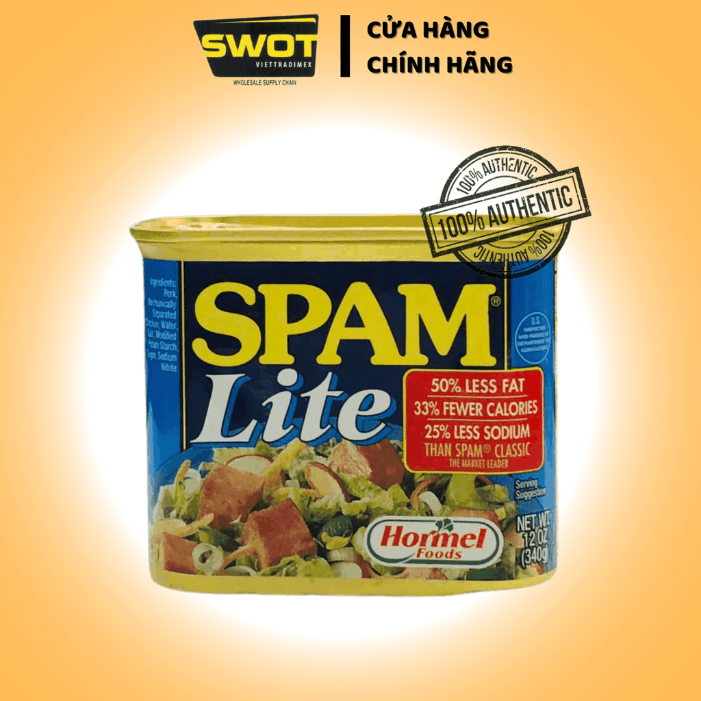 Combo Lốc Thịt hộp SPAM Hormel Foods Mỹ 340g, Thịt heo hộp Mỹ thơm ngon đậm vị, giàu chất dinh dưỡng - SWOT ------------------ 1. THÔNG TIN SẢN PHẨM: Thịt heo hộp SPAM Hormel Foods Mỹ 340g - Xuất xứ: Mỹ - Thương hiệu: SPAM - Thành Phần: Heo Mỹ cao cấp - Trọng lượng: 340g