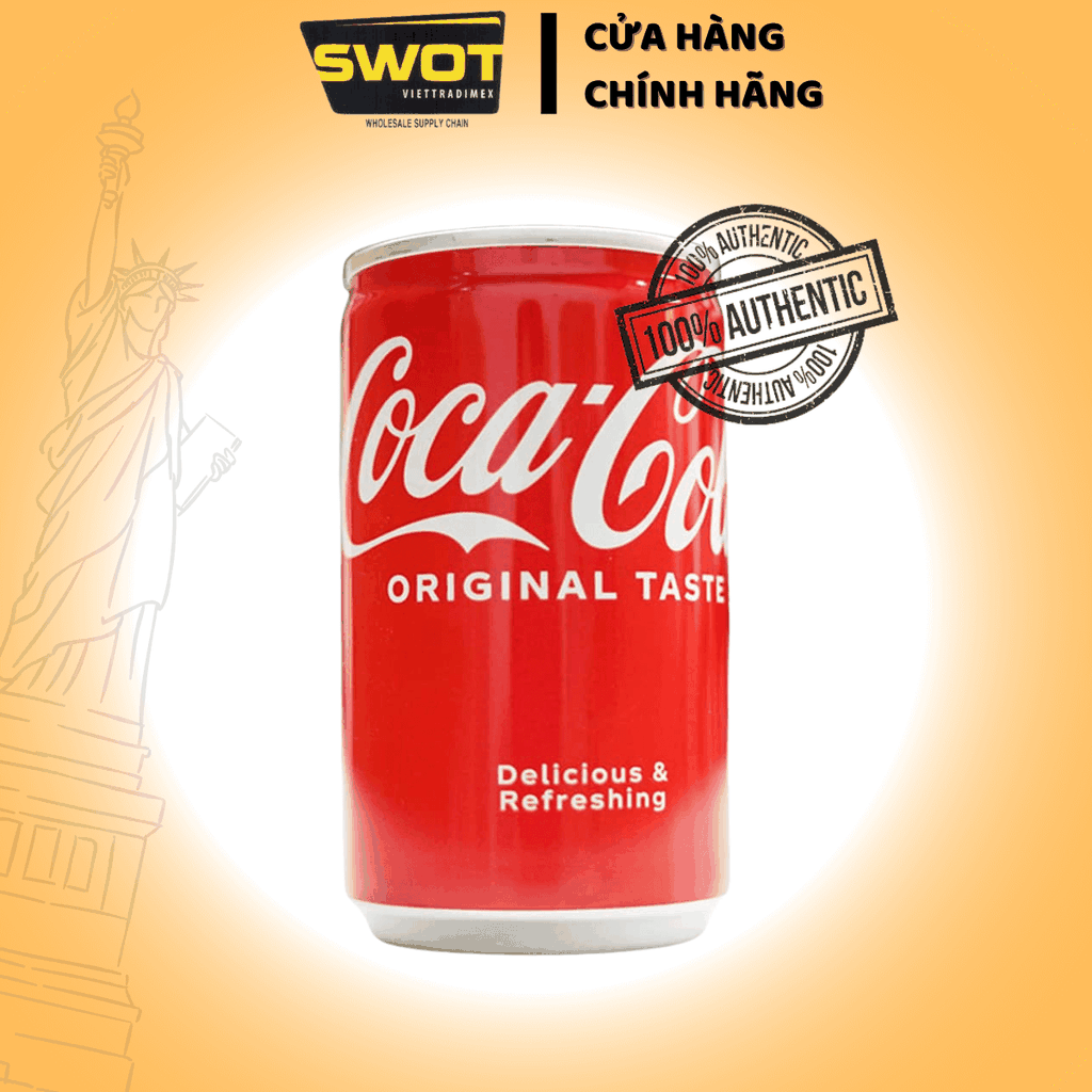Nước ngọt Coca Cola Nhật 160ml, Nước giải khát gas CocaCola cao cấp thơm ngon đặc biệt, bổ sung năng lượng - SWOT Sản phẩm được đóng lon kín đáo, dễ bảo quản và dùng được lâu. Người dùng có thể mang theo dễ dàng khi đi học, đi làm hay trong những chuyến đi chơi, picnic. Nước giải khát có gas Cocacola Nhật có mùi vị thơm ngon, sảng khoái. Sản phẩm giúp cơ thể bù đắp nước, bổ sung năng lượng, giúp xua tan cơn khát và cảm giác mệt mỏi. Hướng dẫn sử dụng & Bảo quản: Dùng trực tiếp. Ngon hơn khi uống lạnh. Bảo quản nơi khô ráo thoáng mát. Tránh ánh nắng trực tiếp