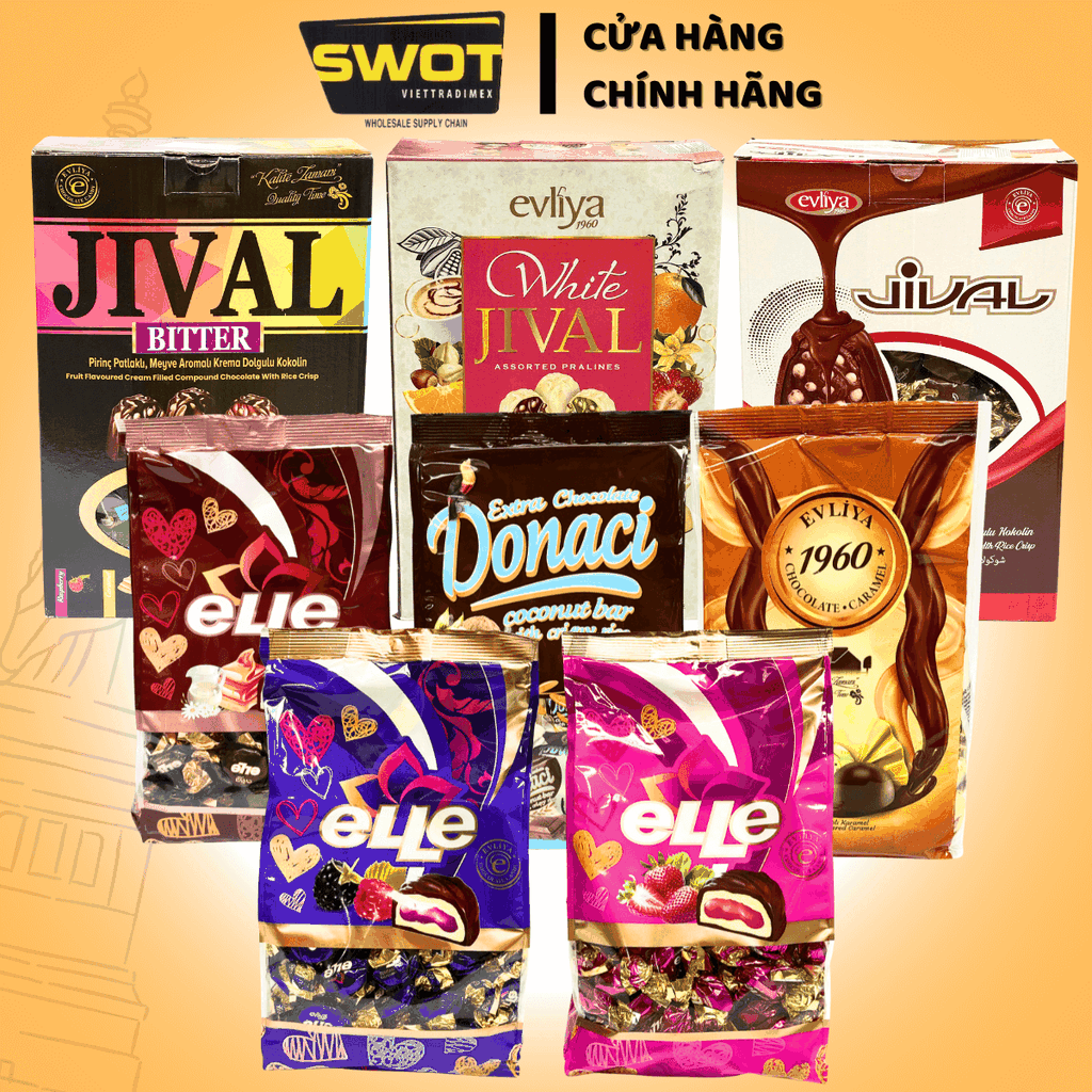 Socola Evliya các loại của Thổ Nhĩ Kỳ, nhập khẩu trực tiếp, hương vị quen thuộc, thơm rõ vị socola bên ngoài, nhân kem thơm sữa bên trong tạo hương vị khác biệt - SWOT