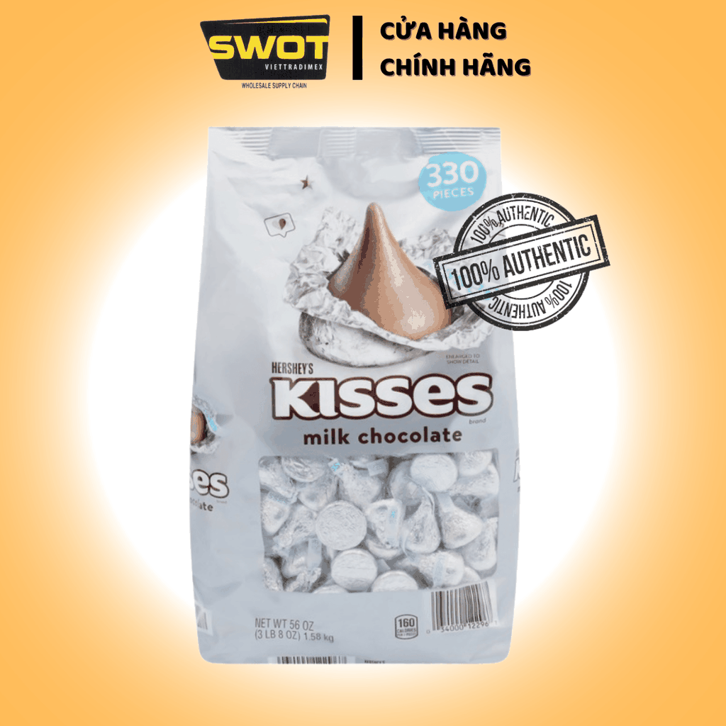 Socola sữa Hershey's Kisses Milk Mỹ 1.58kg 330 viên, Chocolate kem sữa vị đắng vừa không ngọt gắt, chính hãng Hershey Mỹ.