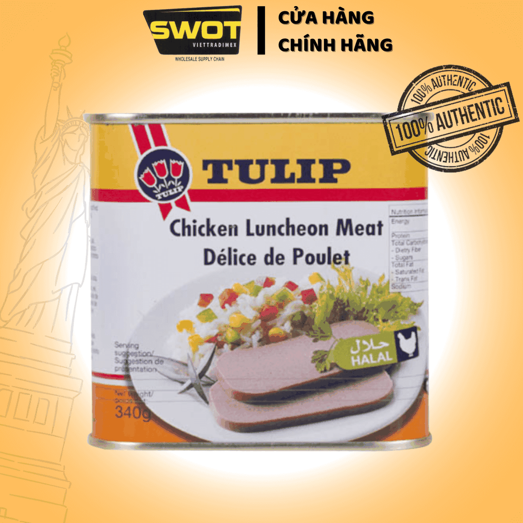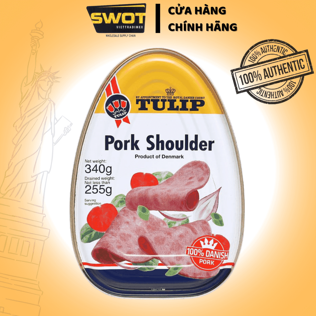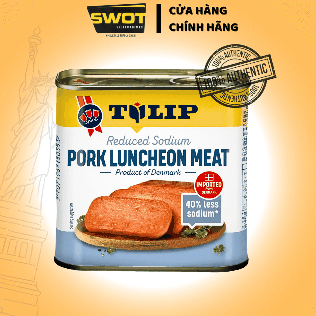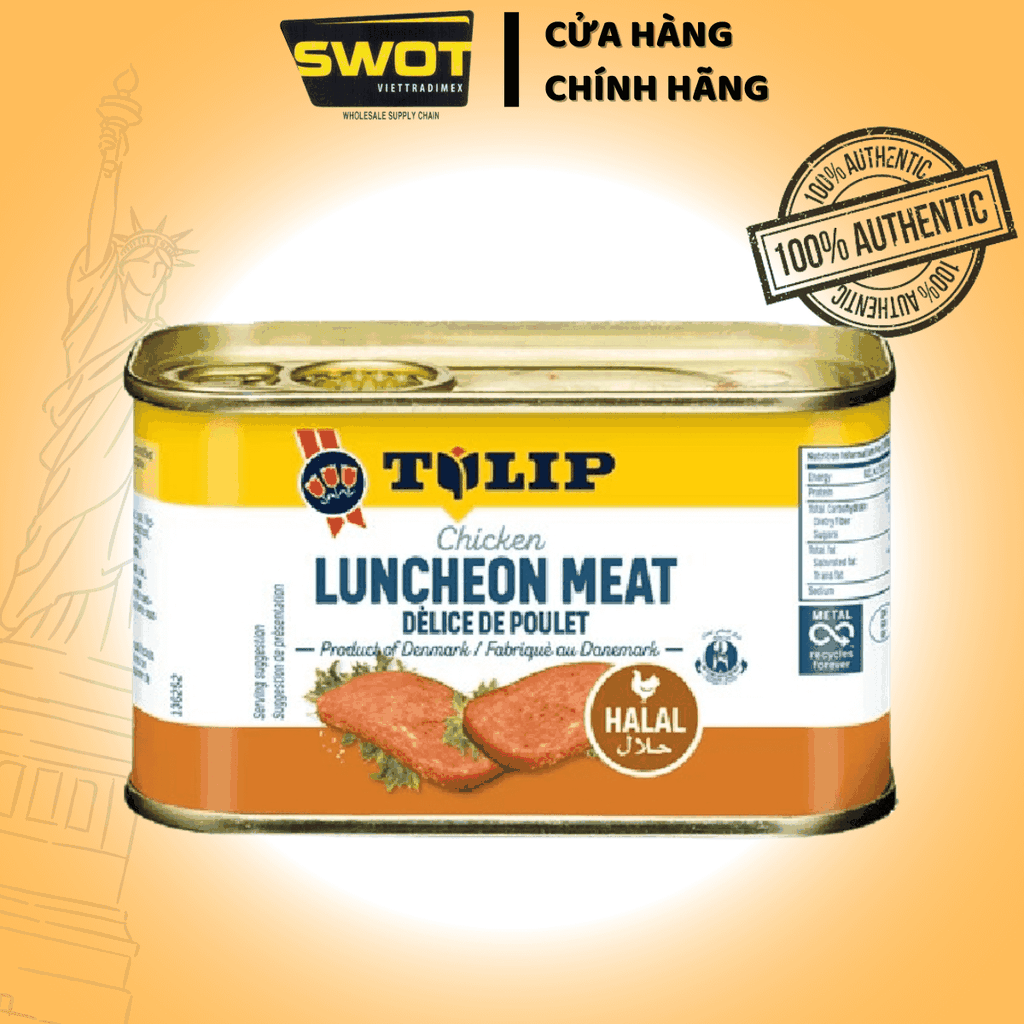 Thịt hộp Tulip của Đan Mạch 340g, Thịt hộp Đan Mạch cao cấp, nguyên vị heo và gà truyền thống, siêu thơm ngon - SWOT