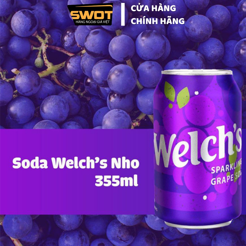 Thùng 12 lon Nước ngọt Welch's Mỹ 355ml vị Nho, Nước giải khát có ga Welch's Mỹ cao cấp, thơm ngon đặc biệt - SWOT ------------------ 1. THÔNG TIN SẢN PHẨM: Thùng 12 lon Nước ngọt có ga Welch's Mỹ 355ml vị Nho - Xuất xứ: Mỹ - Thương hiệu: Welch's - Dung tích: 335ml - Hương vị: Nho Mỹ